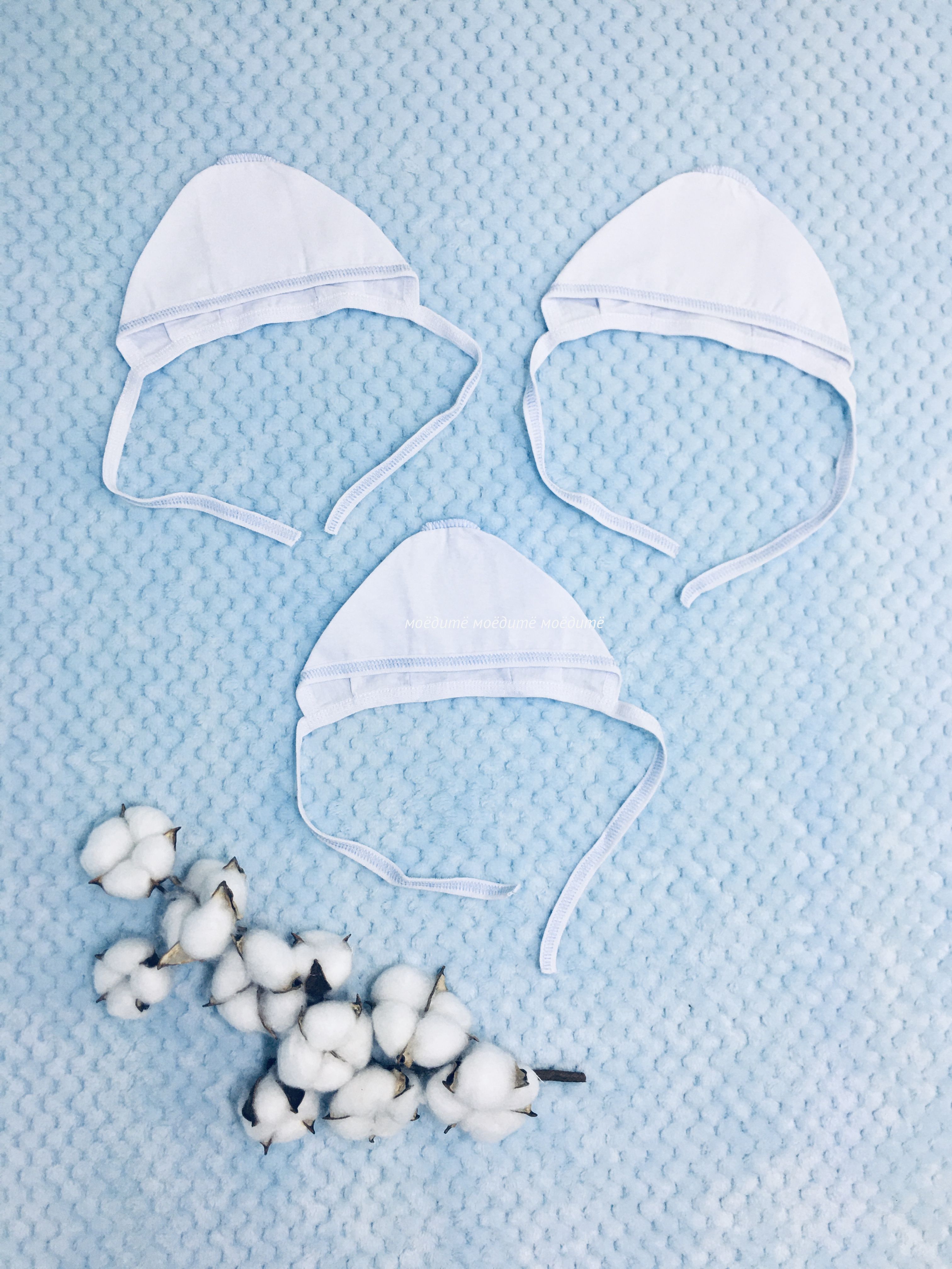 "МоёДитё" чепчик кулирка белый с голубым ЧК015 "Гардения" в Октябрьском